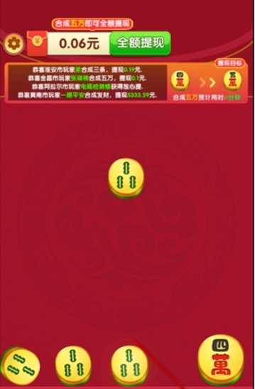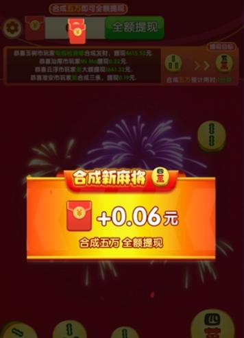 2、每次成功合成新的麻将棋子,都能立即得到一笔红包奖励。