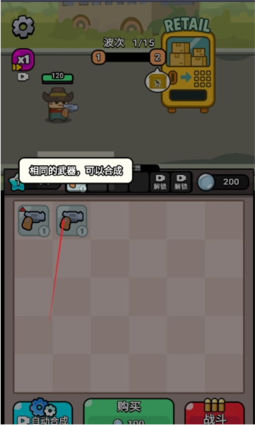 1.前往零售机购买武器,将相同星级的武器进行合成,就能获得更高阶的装备。