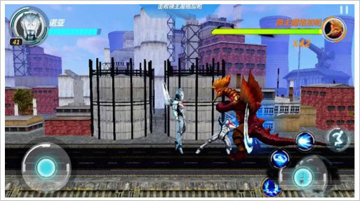 2、游戏操作简单,左侧虚拟摇杆控制奥特曼移动;