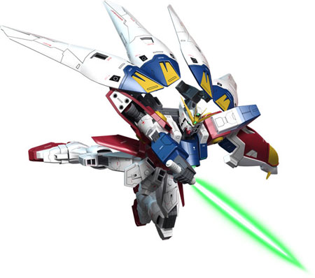飞翼敢达零式是五架高达的原点机体,由卡特尔依据五位博士遗留的设计图完成。可变形为飞鸟形态,在宇宙空间进行高速巡航。主武器双管爆裂步枪威力巨大,甚至能一举摧毁宇宙殖民地。机体搭载的“零式系统”可释放无敌战力,但也会过度增强驾驶员的斗争本能,因此要求驾驶员具备强韧的精神力。