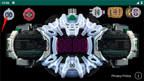 6、点击时空驱动器上方的发条按钮,驱动器将伴随霸气音乐旋转,完成假面骑士变身。