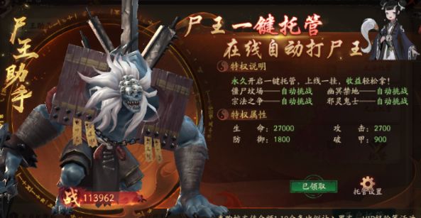 特权方面,尸王助手与至尊特权搭配使用能提升效率。