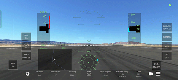 1、进入驾驶界面后,起落架控制用于收起或放下机轮;刹车需在起飞前使用,将油门推至百分百后释放;降落前同样需要刹车。