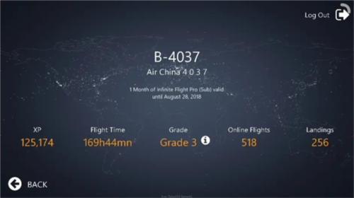 5、主选项下方有五个次级功能;飞行日志用于查看积分与勋章,每次完成飞行可获得积分;点击成就可查看勋章详情,确认后返回。