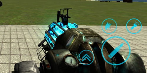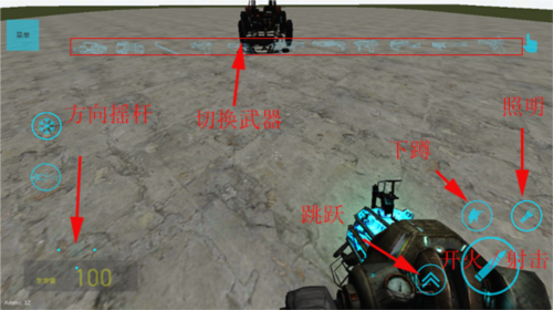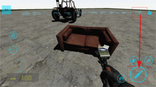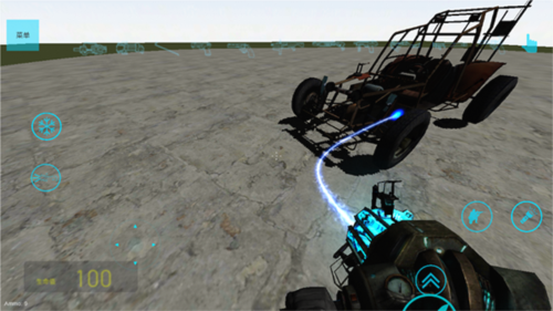 4、默认武器可用于移动物体,选中想要移动的物体后,长按开火键锁定,保持按压状态并滑动开火按钮即可拖动。