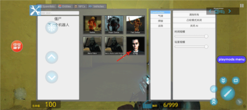 7、需要摧毁已生成的物品、人物或生物时,需先切换至武器,再点击射击;具体操作如下图所示。