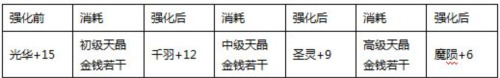 当翅膀淬炼至+9,即可消耗天晶与金币进行进阶,成功后等阶提升,淬炼等级下降三级;进阶过程百分之百成功。天晶同样产自决斗神殿。