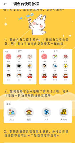 在手机版中进入调音台,上方为变音类型选择区,男女声选项不同。