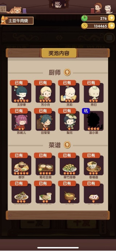 2、收集乐趣浓厚,轻松获得造型各异的厨师角色;