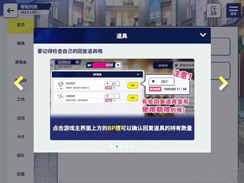 游戏中体力并非耗尽就无法演出,而是通过消耗BP值来提升道具掉落效率。因此在刷特定素材时,BP显得尤为重要;某些歌曲带有道具掉落提升效果,配合高体力消耗去刷,效果显著。
