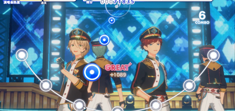 除立绘外,游戏还采用了时兴的Live2D技术。不仅能在主界面与角色互动,打歌环节更能看到少年们在舞台上活力四射的表演,这是相比前代的一大进步。