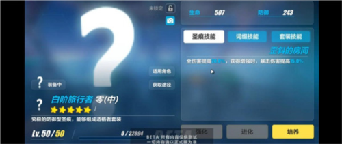 下装圣痕提供暴击伤害加成,并在增强状态下增加10%物理伤害,属性较为均衡。