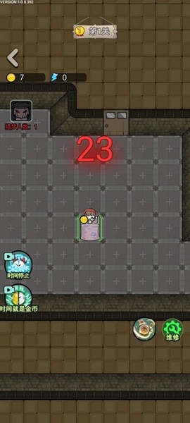 (3)将门升至5级后,继续升床至32金币/秒;若鬼来攻击,优先升级门和炮台,确保炮台能将鬼打至残血,避免其持续挠门;