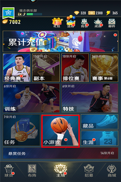 每日小游戏务必完成,体力在游戏中至关重要,尤其在刷取球员突破道具碎片时消耗巨大;游戏需要培养多名球员,团队的力量远胜个人;投篮赛达成指定目标还可获得额外奖励。