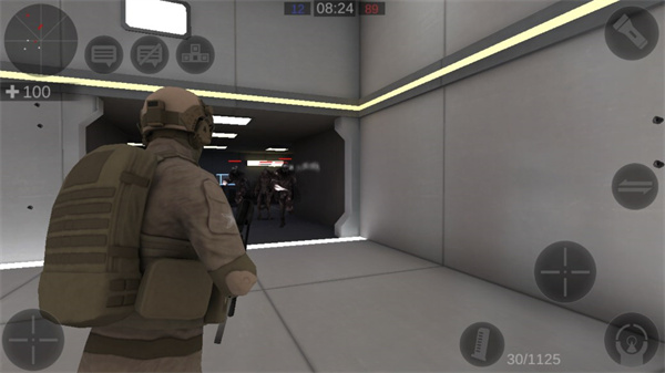 5、进入战斗,左侧虚拟摇杆控制角色移动,右侧按钮负责瞄准与射击,屏幕右上方可开启手电筒照明。