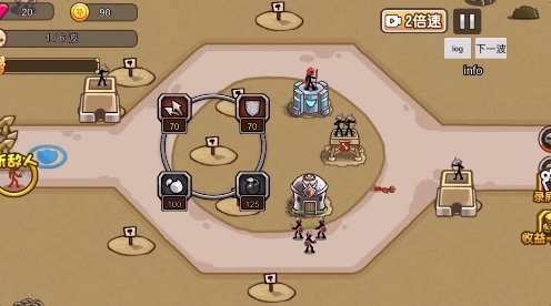 游戏核心玩法与传统塔防相似,每类防御塔具备独特功能。弓箭塔擅长单体高伤害输出;炮塔侧重于范围群体攻击;冰塔能有效延缓敌人行进速度;民兵塔则可召唤单位协助作战。所有防御塔均可使用金币进行升级强化,玩家还能直接招募援军加入战斗。系统初始赠送的防御塔可直接解锁使用。