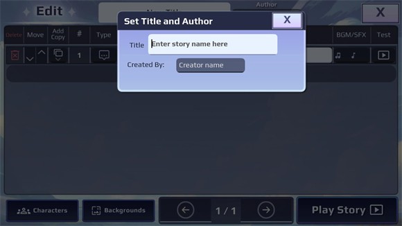 2、进入故事模式后,能够创作个人视觉小说,提供多种文本框、名称标签、字体及颜色供选择;