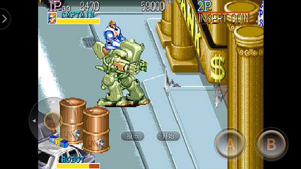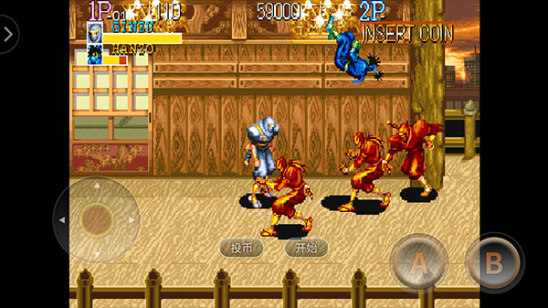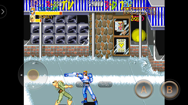 1、完成名将街机官方版游戏的下载与安装后,首先点击投币按钮,随后按下开始键。