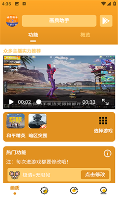 主播同款画质助手是一款功能强大的游戏画面优化工具,它能帮助玩家轻松调整游戏画质与帧率,尤其适合设备性能有限却想获得高清流畅体验的用户。通过简单的设置,即可解锁高帧率与精细画质选项,提升游戏视觉感受与操作跟手度。