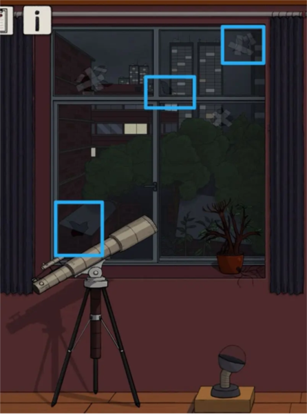 拉开窗帘,点击窗边的植物盆栽,获得“残缺胶带”。