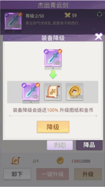 在装备详情页点击重铸按钮,可选择降级或降品操作,完成后系统将返还所有曾消耗的升级与合成材料。