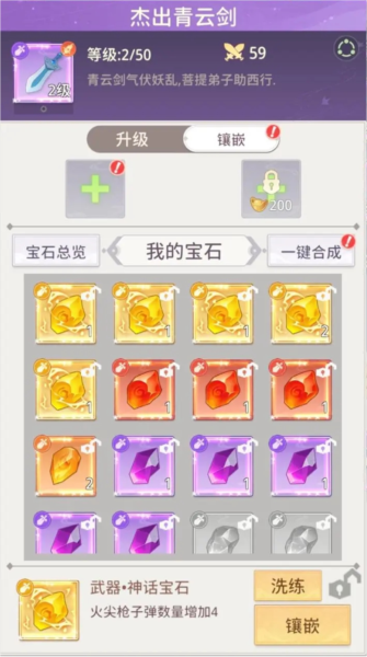 宝石可通过合成提升品阶,消耗五枚同部位同品阶宝石即可;当宝石品阶达到传说以上,可使用洗练石进行词条洗练,获取所需属性。