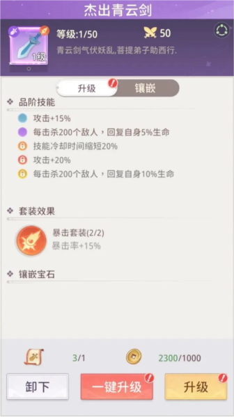 提升战力的关键步骤是升级装备,消耗对应图纸与金币即可提高装备等级与基础属性。