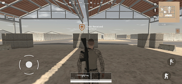 4、游戏中通过左下角虚拟摇杆控制移动,点击枪支图标即可开火射击。