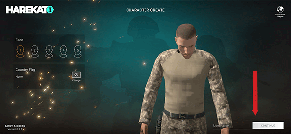 1、启动游戏后,先选择心仪的角色形象,随后在右下角输入名称并点击CONTINUE按钮。