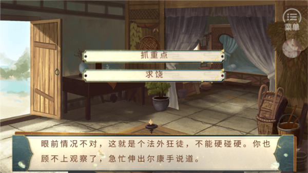 2、点击界面右上角的“菜单”按钮,可以进行存档、读档、回顾剧情以及调整游戏设置等操作。
