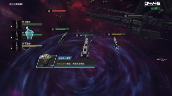 1、长按并滑动屏幕左侧的舰队图标,即可指挥舰队集结与移动。