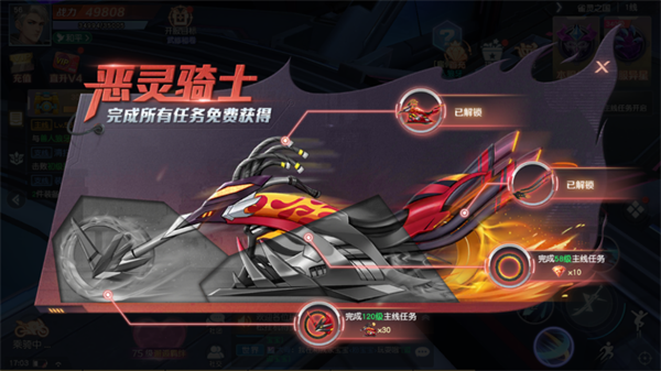 活动内容:在游戏内完成120级主线任务后,可免费获得座驾【恶灵骑士】。
