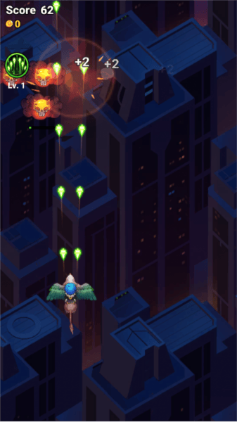 敌人出现时,控制飞龙移动并发动攻击,飞龙会自动发射导弹,玩家主要负责瞄准目标;