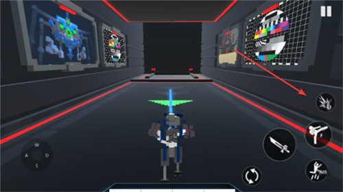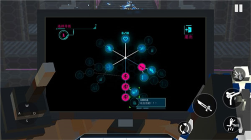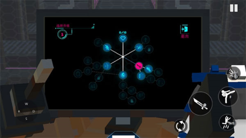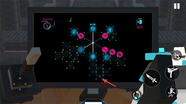 1. 返回地下仓库,接近前方机器人,点击右上角出现的升级按钮,即可开启技能升级界面。