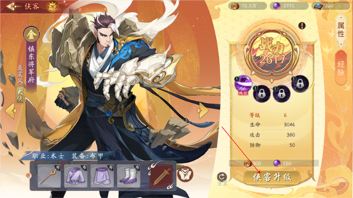 3、跳转至侠客详细信息界面,点击上方的“侠客升级”按钮即可完成操作。