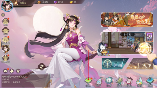玩法包括侠客行探索、华山论剑对抗、藏宝地寻宝等多种模式;还会定期开放比武招亲、鬼刃出世等限时活动。