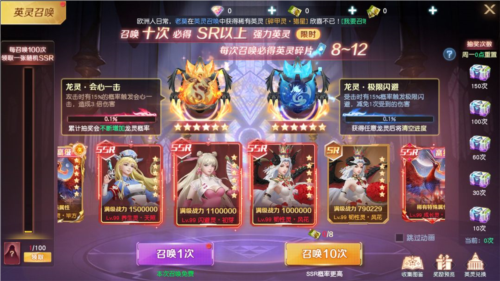 除副本外,玩家还可在英灵召唤界面消耗召唤卡快速获取英灵,此方式有更高几率获得SR与SSR英灵。召唤设有保底机制,十连召唤必得一个SR或SSR英灵;每次召唤都会累积进度,每满100次可获得一张随机SSR英灵卡。