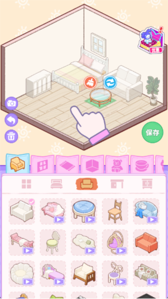 2、家具支持任意旋转缩放,DIY系统还允许你自定义墙纸、地板和灯具等元素;