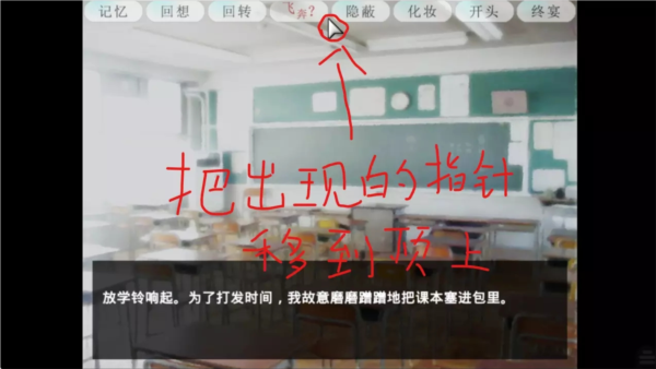 3、随后将出现的鼠标指针移动到屏幕顶部,即可显示出游戏的完整菜单。