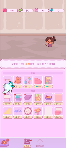 3、建造卧室空间,用花园赚取的钞票购置家居物品;