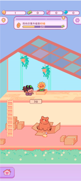 4、进入花室区域,收获向日葵喂食小熊以获取金币;