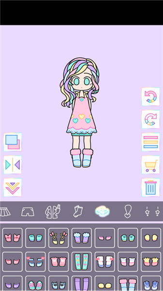 缤纷女孩是一款采用柔和色调与治愈画风的休闲换装游戏。玩家选定角色后,可以自由发挥创意,从脸型、发型、服装、鞋履到眼睛眉毛等数十个模块中随意挑选搭配。当使用特殊服饰或饰品时,角色会触发可爱动作,如跳舞、吃爆米花或比心。游戏操作简单直观,适合喜爱装扮与创造的玩家体验。