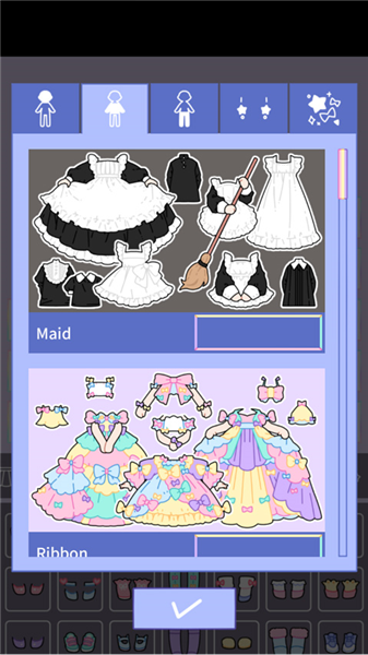 3、在下方栏目左右滑动,挑选喜欢的服饰与道具。