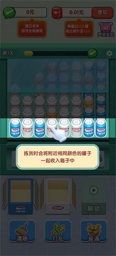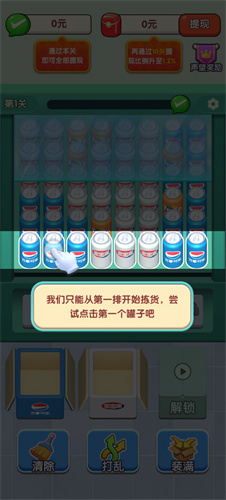 1、建议从第一排开始拣货,先点击第一个罐子。