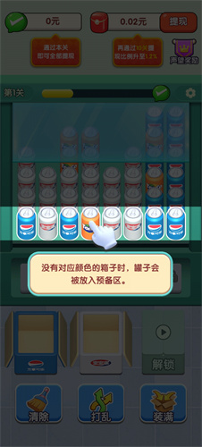 3、若暂无对应颜色的箱子,罐子会暂时存放在预备区域。