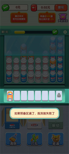 3、多个相同货物可触发消除,获得额外积分,从而开启新挑战并解锁后续关卡;