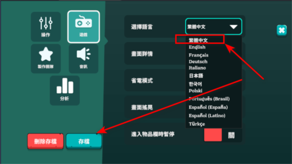 3、在语言列表中找到并选择繁体中文,确认后保存设置并退出即可。
