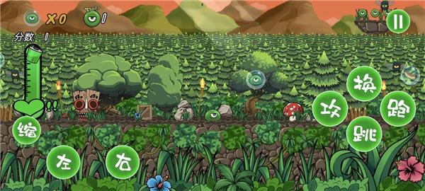 4、使用左侧方向键控制移动,右侧按钮负责攻击、跳跃与加速奔跑;缩放键可调整画面视野。