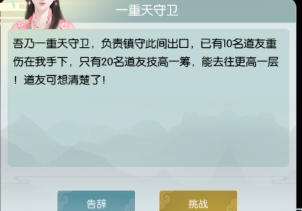 1、天机塔为爬塔副本玩法,仅飞升玩家可挑战;每日固定次数为两次,共十大层,每大层含十小关。在一次挑战中连续击败十小关首领,即视为通过该大层,可解锁更高层数。