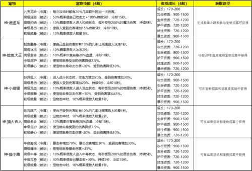 神级宠物:当前版本共有五只神级宠物,其最高阶状态属性与成长值如下: